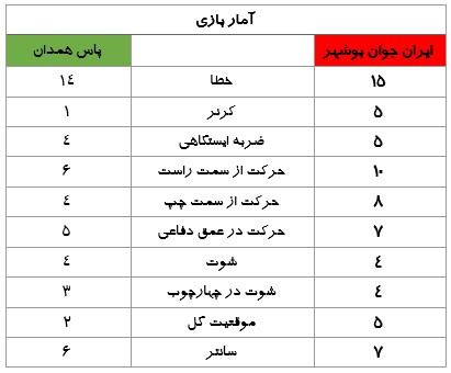 در دقیقه 56 مهدی قاسمی یار تکنیکی ایران جوان بسادگی کارت زرد را از جانب داور میدان دریافت کرد. حملات ایران جوان در این دقایق گسترده شده بود. دو الی سه بخت گلزنی نصیب میزبان هم گردید که با هنرنمائی گلر میهمان از گل شدن توپ ایران جوانی ها جلوگیری کرد. خرمزی در دقیقه 85 هافبک جوان خود (عالیشه) را به میدان فرستاد که در همین چند دقیقه نمره قبولی گرفت. در این مسابقه تعویض های خرمزی بهتر از مربی پاسی ها بود. در اخرین دقیقه قانونی بازی، مهدی زارعی وینگر راست ایران جوان از روی شروع عجولانه دروازه بان پاس داشت به طرف دروازه همدانی ها حمله ور می شد که گلر پاس به اشتباه توپ را در بیرون 18 قدم با دست لمس کرد تا داور میدان بدون درنگ او را از زمین بازی اخراج کند.