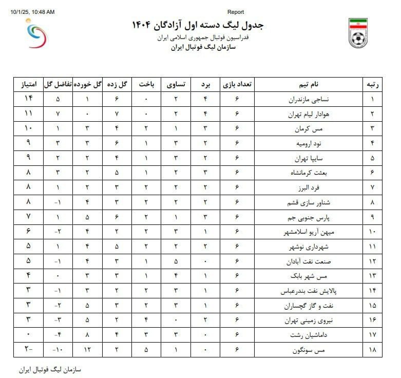 با این تغییر، نساجی صدرنشین شد و پارس جنوبی جم از رده چهارم جدول به رده نهم جدول سقوط کرد.