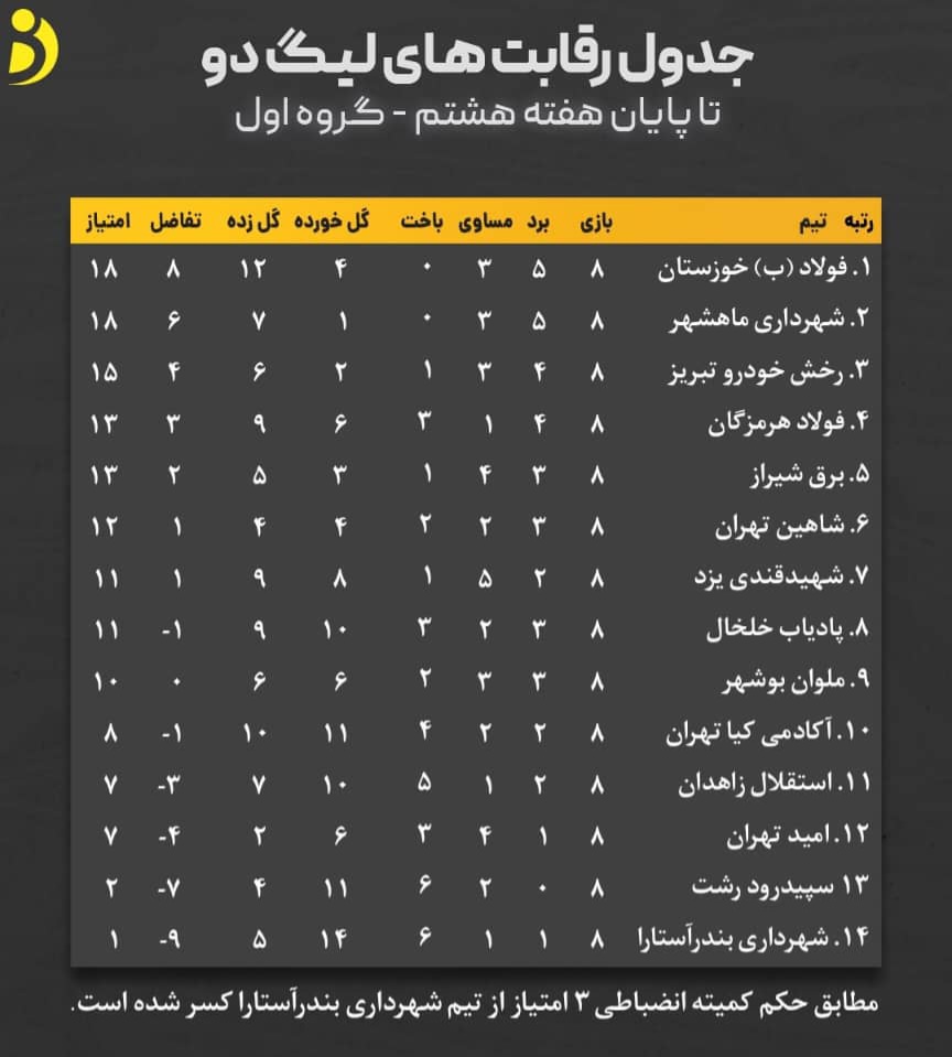 ورزش بوشهر: هفته هشتم لیگ دسته دوم کشور برای نمایندگان استان خوب پیش نرفت!